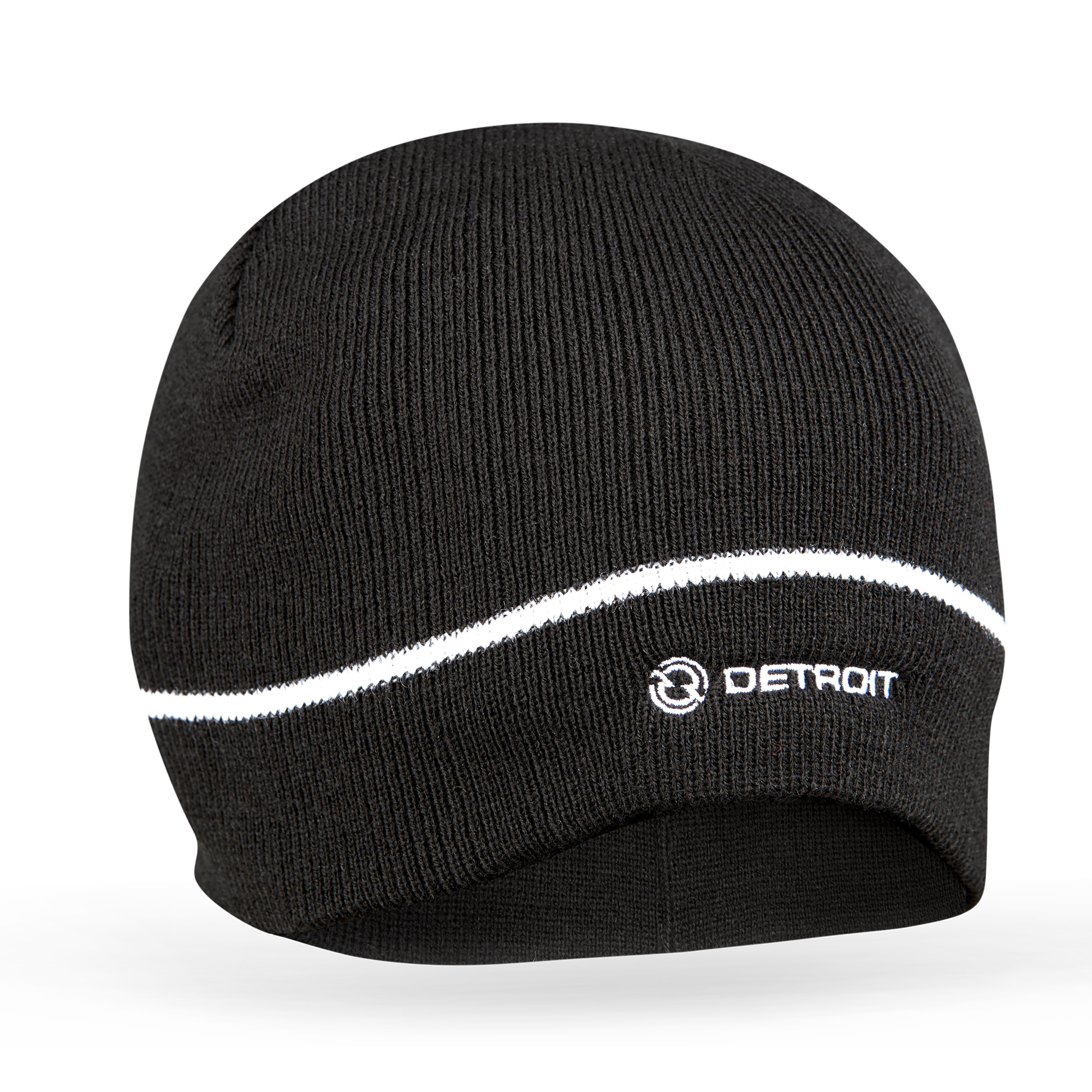 This “Detroit” branded beanie will keep your head warm whilst still looking pretty darn good! The “Detroit” logo is on the front with a contrasting white stripe that goes around the beanie.